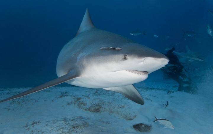 The Bull shark ( Carcharhinus leucas) is also known as Zambezi shark. They are found worldwide along warm, shallow and coast of rivers. They are very well known for its aggressive nature and are found in both salt and fresh water. Make Bull shark grow upto 7 feet and females grow upto 11 feet. Their weight goes upto 91 to 227 kg. Human attacks are mainly found in freshwater and moreover less attacks are found and not every attack is fatal.