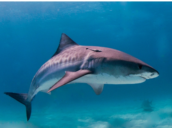 The tiger shark ( Galeocerdo cuvier). It has a length of 5m (16 ft 5 inch). Due to its dark stripes down it’s body which resembles the tiger pattern is called as tiger shark but these stripes fade away as the shark matures. They are found in temperate and tropical waters, and are mainly seen in central Pacific ocean. It comes second after the great white for fatal attacks on humans.