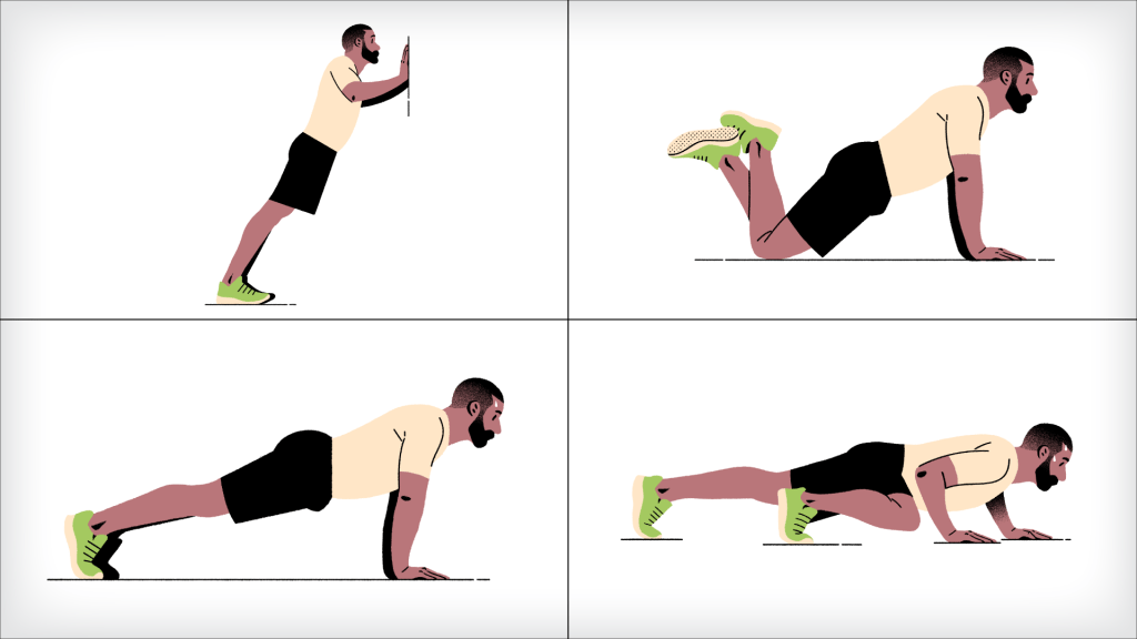 - Lower your body by bending your elbows until your upper arms are parallel to the ground.